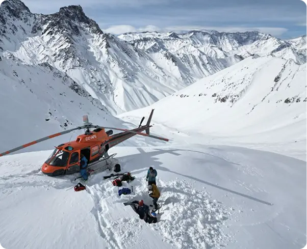 Chile and Argentina offer some of the most diverse heli-skiing in the world, with 14,000 ft peaks just miles from the Pacific Ocean. With over 5,000 vertical feet of untouched descents, no down days, and the ability to adapt to weather conditions, every day is a new adventure.